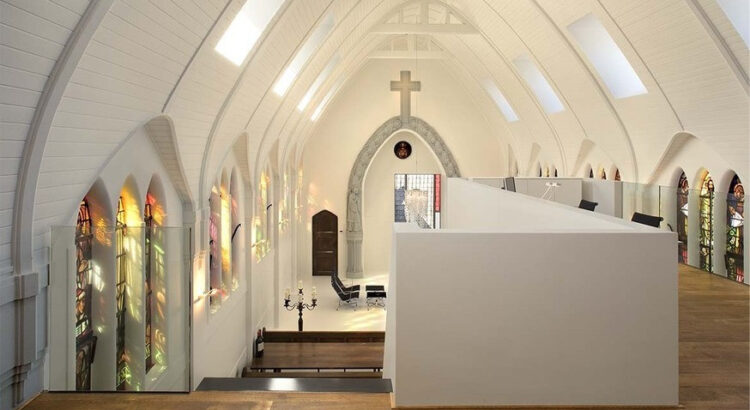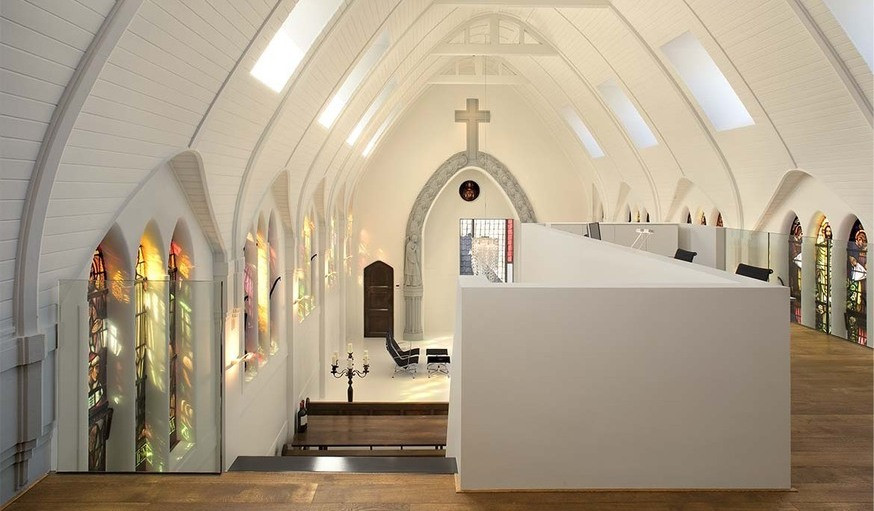 On peut trouver de nombreuses transformations de chapelles, ou même d’églises, en habitation. Ici les architectes ont imaginé un magnifique loft dans cette ancienne chapelle catholique.