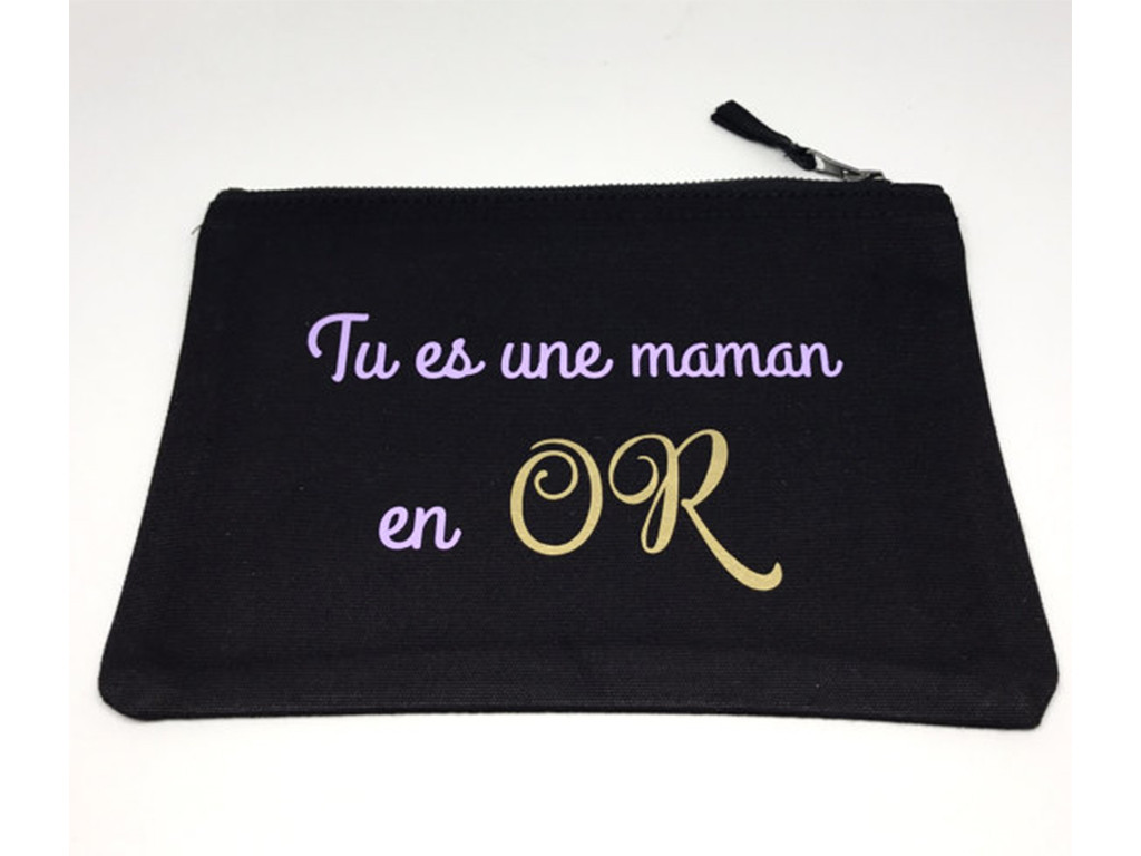 Une maman qui a toujours un petit bazar à ranger, à emporter avec elle, sera ravie de cette trousse, et du message qui l’accompagne. En plus vous pouvez la personnaliser de votre prénom en guise de signature de votre déclaration. (14,00 €) https://www.etsy.com/fr/listing/516027415/cadeau-tu-es-une-maman-en-or-trousse-de?ref=related-4