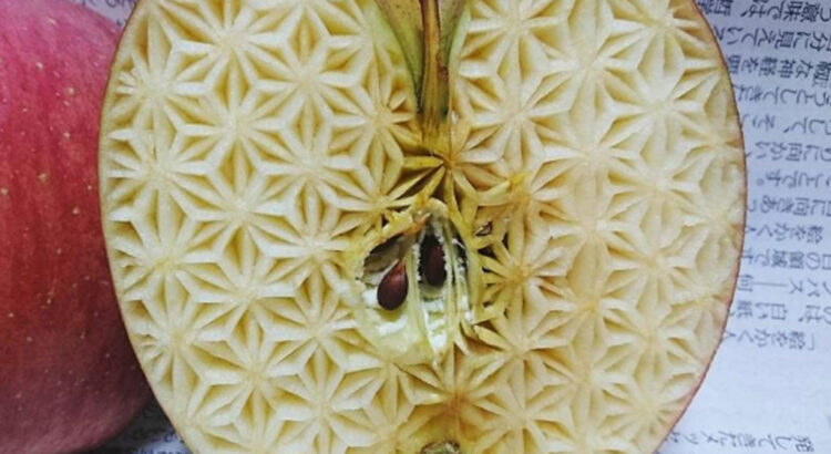 Parfois, il privilégie des motifs graphiques et d’autres fois, il opte pour des sculptures plus représentatives, comme ce dragon banane ! Quel travail ! La plupart de ces modèles sont dérivés de motifs japonais traditionnels. Par exemple, les dessins taillés dans la carotte, la pomme ou le brocoli de Gaku s’inspirent du design floral asanoha de l’art japonais. Ce motif a la forme de 6 diamants. Comme son nom japonais l’indique (asa=chanvre, ha = feuille) il s’agit en fait de la représentation de 6 feuilles de chanvre stylisées. Le chanvre a longtemps été la plante la plus utilisée pour fabriquer du tissu car le coton est arrivé très tard au Japon.