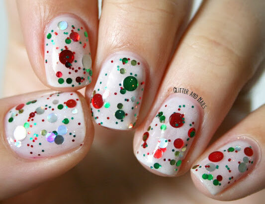 Une base de blanc, et des paillettes rouges et vertes à foison ! De quoi faire de l’ombre au sapin de Noël ! Chez Glitter ans Nails : [ez_link target=’_blank’ url_id=’20535′ ]http://glitterandnails.blogspot.fr/2013/12/kringle-all-way-kbshimmer.html[/ez_link]