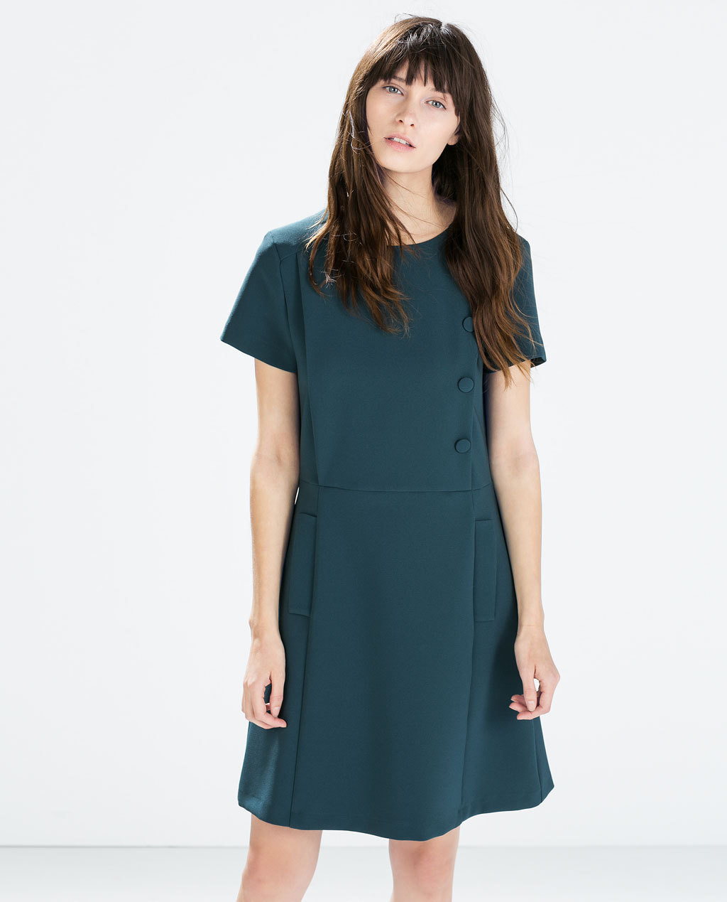 Zara, robe trapèze boutonnée à tendance rétro-chic,49,95 €