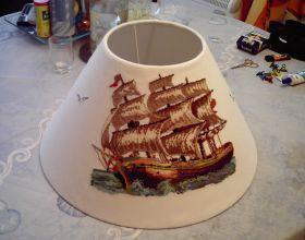 Abat jour de 45cm de diamètre avec voilier trois mâts dans la tempète, adatptable sur n'importe quelle lampe.