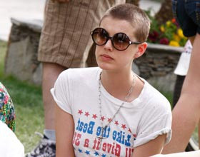 Lors du festival rock de Coachella, Agyness Deyn, a déboulé tout sourire avec seulement un centimètre sur le crâne !