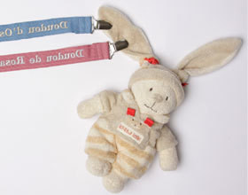 On le fait pour les toutous, alors pourquoi pas pour les doudous ? Place à un kit de tatouage spécial peluches, comprenant une étiquette et du matériel à coudre pour la fixer sur le doudou. On renvoie une carte remplie à la société, et le doudou est enregistré dans le fichier. Si quelqu’un trouve, il y a plus qu’à ! (appeler le numéro vert et donner la référence). L’intérêt par rapport à la solution précédente : préserver l’anonymat de bébé !