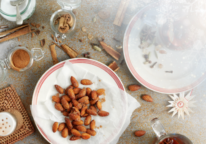 Faites cuire les amandes dans une poêle à frire pendant 1-2 minutes puis ajoutez 1 cuillère à soupe d’eau. Une fois le liquide évaporé (quelques secondes), ajoutez le sucre et la cannelle et laissez caraméliser.Retirez du feu et laissez refroidir.