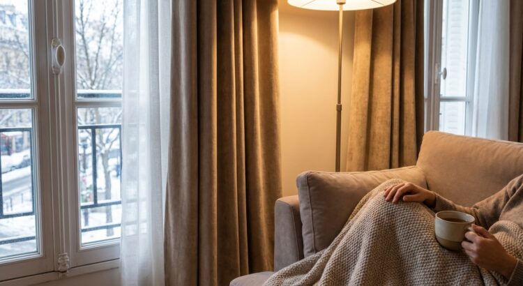 Quand vous augmentez le thermostat d’un seul degré, votre facture grimpe d’environ 7 % sur l’année. Avant de pousser le chauffage, il est donc malin de traiter la source de l’inconfort : la paroi froide. Un rideau épais devant la fenêtre crée une lame d’air plus chaude entre le tissu et le vitrage, ce qui réduit la sensation de froid sans toucher à la chaudière.