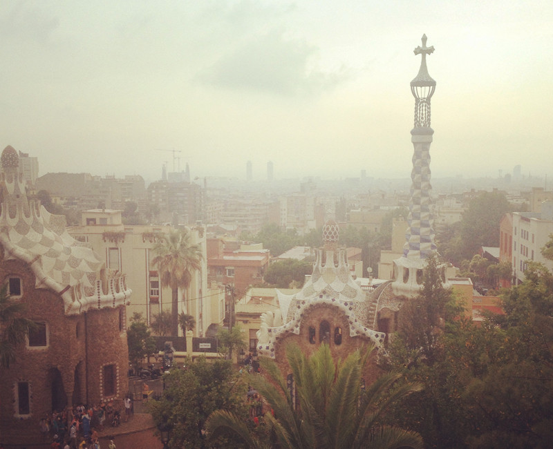 – le Parc Güell visitée sous l’orage, mes cheveux droit sur ma tête à chaque coup de tonnerre, ma jupe blanche teintée de boue car traînée sur un banc trempée (mais siii, avec le recul, c’est drôle).