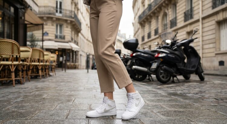 La cause est simple : la tige qui s’arrête au niveau de la cheville crée une vraie barre visuelle, surtout avec des pantalons épais ou des collants sombres. Bonne nouvelle, il existe une astuce très simple pour garder ses baskets montantes sans subir l’effet jambe tassée. Et cette règle change vraiment tout.