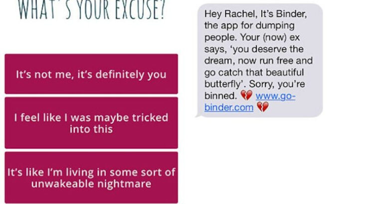 Niveau applications, dans notre téléphone mobile, on trouve de tout. Des réseaux sociaux, des infos, des jeux, de quoi draguer… Et désormais aussi, de quoi plaquer. Ça, c’est possible grâce à Binder.