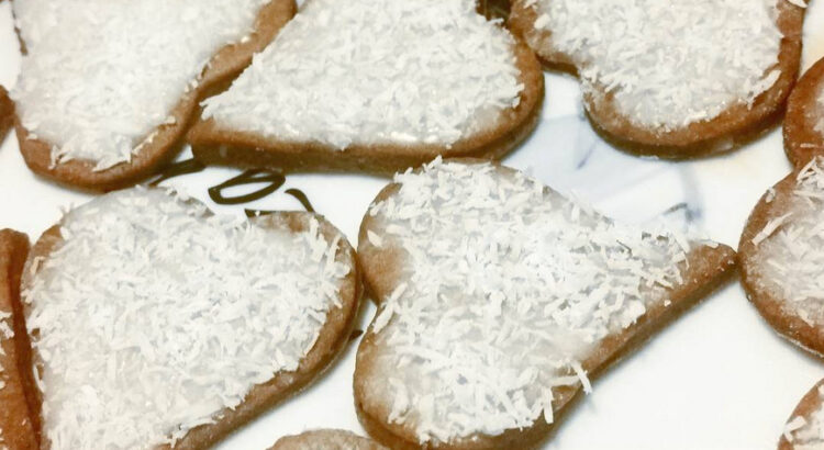 Enfournez à 175° pendant 10 minutes, et laissez refroidir sur une grille. Une fois les biscuits bien froids, appliquez le glaçage et saupoudrez de coco râpée.