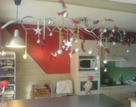 Y attacher plein de jolies décorations de Noël (plumes, boules, rubans, étoiles etc..).