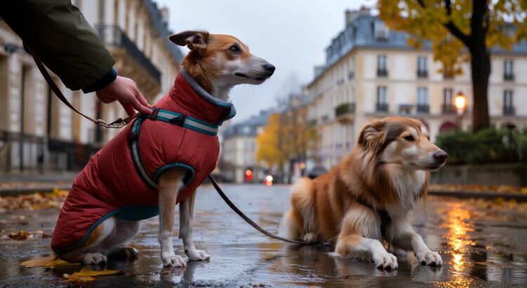 Pour la fin d’automne française, de fin octobre à novembre, un ensemble coupe-vent, déperlant et suffisamment isolant avec une doublure polaire en option couvre 90 % des situations. Le but est simple : garder le chien au sec sans le transformer en sauna.