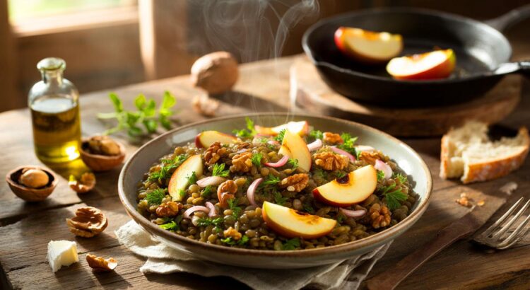 En 2025, on veut des recettes concrètes, économiques et sans chichi. Cette salade tiède coche ce cahier des charges tout en gardant de l’allure. Entre fondant, croquant et douceur, elle propose un vrai jeu de textures, fidèle à l’esprit des marchés d’automne: pommes rôties encore tièdes, lentilles fermes, et cette profondeur de l’huile de noix qui arrondit tout, sans alourdir.