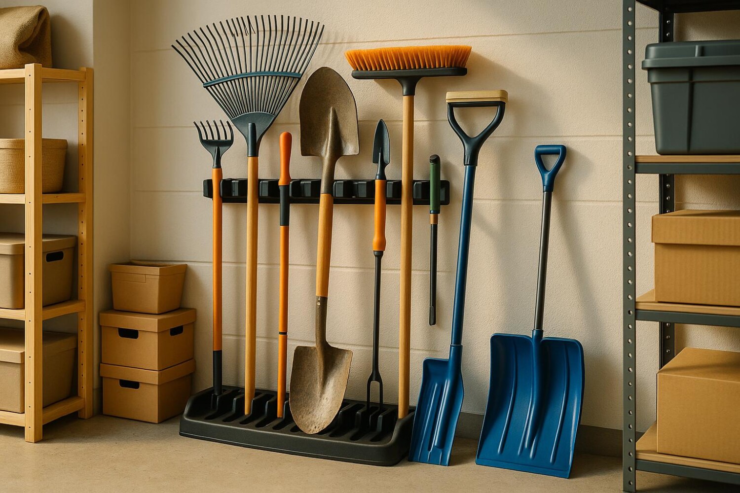 Les grandes armoires et les étagères classiques libèrent déjà une partie du sol, mais elles laissent souvent les coins vides, alors qu’ils pourraient accueillir les manches les plus encombrants. C’est là que le range-outils d’angle prend tout son sens, en venant occuper un espace que l’on pensait perdu. Installé dans un angle de garage, derrière une porte ou au fond d’une remise, il regroupe pelles, balais et râteaux au même endroit, sans bloquer le passage.