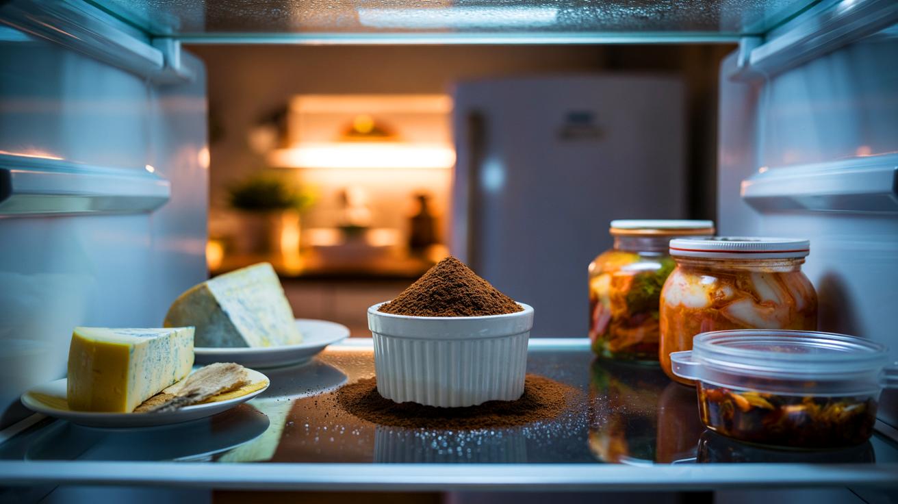 Récupérer, étaler, sécher. Vider le filtre, émietter le marc sur une plaque, puis le passer 45 à 60 minutes au four à 100–120 °C, porte entrouverte pour évacuer l’humidité. Laisser refroidir, verser dans de petites coupelles ou des sachets en coton, et placer là où ça coince: frigo, bac à poubelle, placard à chaussures, arrière-cuisine. Remplacer quand l’odeur “disparaît” et que la texture devient moins croustillante. Ne jetez plus ce trésor brun: mettez-le au travail dans votre frigo.