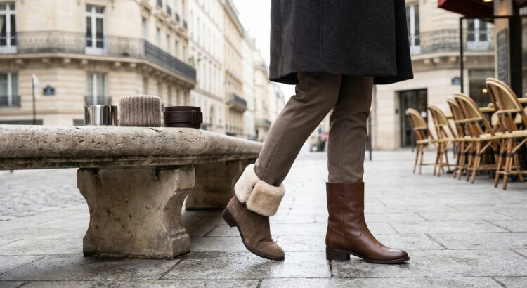 Atout final, ces bottines aident à dessiner la silhouette. Hauteur de tige et épaisseur du revers permettent d’affiner la cheville ou le mollet : large en haut pour équilibrer des chevilles fines, plus bas et dégagé pour allonger la jambe. Avec un slim ou un pantalon 7/8, un revers texturé habille la cassure ; sur un pantalon large, une version lisse évite d’alourdir. Par temps humide avec une robe longue, la tige haute en cuir lisse protège les collants, puis il suffit de rabattre le col quand le soleil revient pour révéler une doublure fantaisie.