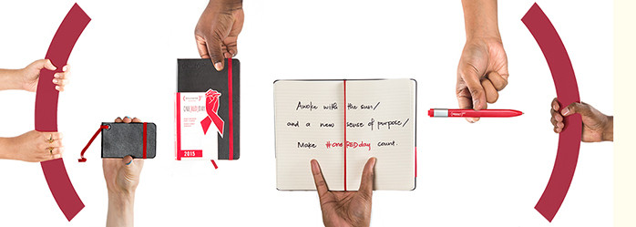 C’est l’initiative mignonne du moment ! Très fan des cahiers Moleskine, j’ai été agréablement surprise de lire que la marque s’associait à l’association (RED) qui est investie dans la lutte contre le SIDA depuis pas mal d’années.