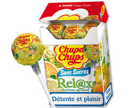 Chupa Chups Relax, 1,99 euros le paquet de 6 mini sucettes. Disponible en grandes et moyennes surfaces.