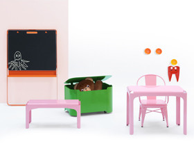 Autour de cette chaise intemporelle, de nombreux produits sont venus compléter cette collection : un guéridon « cigogne », un coffre à jouet « tortue », un tableau « girafe »… Autant de noms d’animaux qui symbolisent l’esprit Tolix enfant ! Dessinées par Sébastien Cordoleani et Franck Fontana, ces pièces colorées et originales sont aussi bien dans le jardin, que dans la chambre !