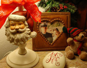 « Je fais toujours une grande couronne pour ma porte d’entrée, puis une ou deux plus petites pour l’intérieur. Je pends aussi des sujets ou des boules avec des rubans sur les abat-jour de mes lampes. Enfin, j’aime confectionner des bonhommes de neige en feutrine et d’autres en rondins de bois. »