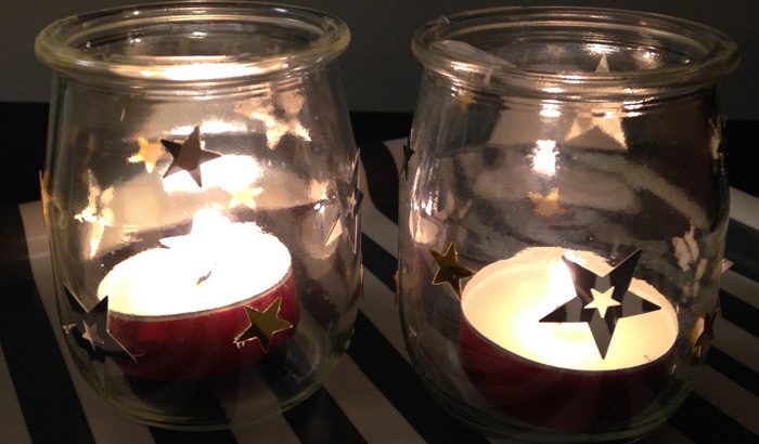 Manger vos yaourts La Laitière et laver les pots. Si vous n’aimez pas les yaourts, vous pouvez acheter des pots en verre tout court (chez Hema ou IKEA par exemple). Ensuite, mettre de la colle sur votre cure-dent ou votre bout d’allumette et en appliquer sur une partie de l’étoile. Coller l’étoile sur votre pot en verre, maintenir quelques secondes pour éviter qu’elle ne se décolle et essuyer rapidement la colle qui aurait débordé. Répéter l’opération avec d’autres étoiles. Une fois que vous avez fini, attendre que ça sèche. Insérer la bougie chauffe-plat et se laisser bercer par la lumière de Noël !
