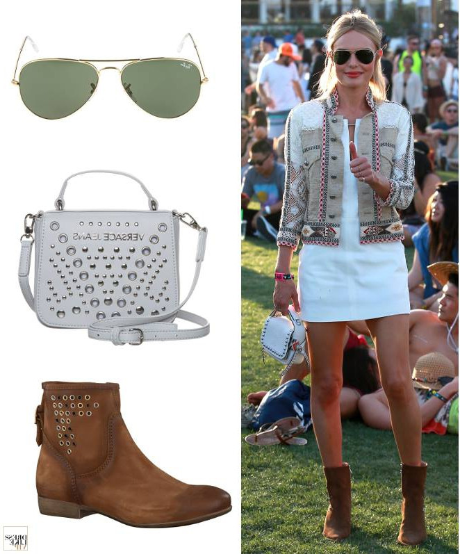 Kate Bosworth a été vu au festival de Coachella avec un look « Fresh & Ethnique ». Elle était vêtue de blanc avec un [ez_link target=’_blank’ url_id=’21612′ ]robe droite[/ez_link], simple, qui mettait en valeur ses jambes. La belle a choisi d’accorder cette pièce avec une [ez_link target=’_blank’ url_id=’21613′ ]veste d’un style ethnique[/ez_link], beige et rose pour réhausser la couleur de sa tenue. Dans sa main, une [ez_link target=’_blank’ url_id=’21614′ ]pochette blanche cloutée[/ez_link], et des [ez_link target=’_blank’ url_id=’21615′ ]bottes marrons[/ez_link] confortables. Pour finir, des [ez_link target=’_blank’ url_id=’21616′ ]lunettes aviateur[/ez_link] qui lui vont parfaitement pour un festival réussi.