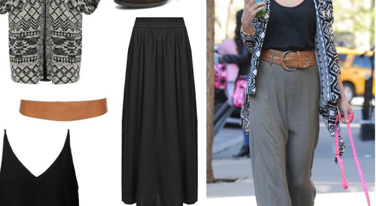 En effet, ce n’est un secret pour personne, le style bohème revient à la mode que ce soit pour la gente masculine ou féminine. Vanessa a choisi avec goût cette tenue, en effet un petit [ez_link target=’_blank’ url_id=’21741′ ]top noir[/ez_link], une[ez_link target=’_blank’ url_id=’21742′ ] jupe longue grise[/ez_link], une magnifique [ez_link target=’_blank’ url_id=’21743′ ]ceinture camel[/ez_link] pour marquer sa taille de guêpe et…cette superbe [ez_link target=’_blank’ url_id=’21744′ ]veste[/ez_link] un brin ethnique à motifs, assortie d’un [ez_link target=’_blank’ url_id=’21745′ ]collier[/ez_link] lui offrant un port altier.