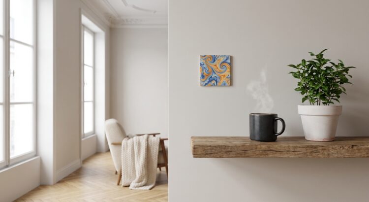 Ce carreau mural n’exige ni perceuse ni gros travaux. Il peut se poser sur une étagère, se caler contre une crédence de cuisine ou s’accrocher comme un mini cadre grâce à un simple crochet adhésif. Dans l’entrée, il accueille les retours de journée. Près de la cafetière, il accompagne le premier café. Dans la salle de bain, il attend au-dessus du porte-savon, à hauteur des yeux.