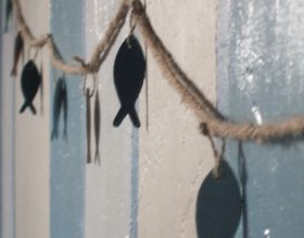 Accrocher de petits poissons sur une guirlande de ficelle évoquant le cordage.