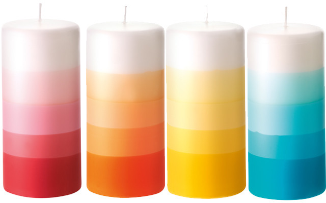 J’ai eu un gros coup de coeur pour ces bougies « piliers » de 15 centimètre de haut aux couleurs fluos et façon tie and dye. Au fur et à mesure que la cire fond, la bougie devient de plus en plus foncée. Mais avant d’arriver, on a le temps, puisqu’elles peuvent brûler pendant environ 60 heures, ce qui leur donne un très bon rapport qualité prix, puisqu’elles ne coûtent que 15,90 euros.