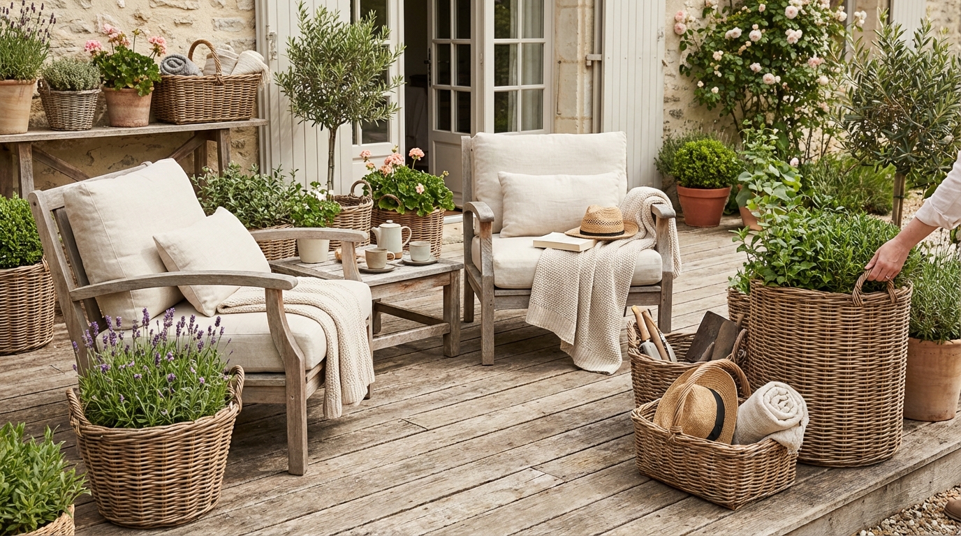 À l’approche du printemps 2026, nos terrasses en attente de soleil cherchent un nouveau souffle. Et si un simple objet de vannerie rétro, oublié au grenier, changeait tout ?