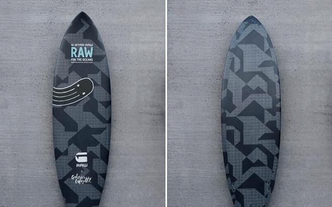 G-Star RAW et les Galeries Lafayette Homme lancent en édition limitée une planche de surf.
