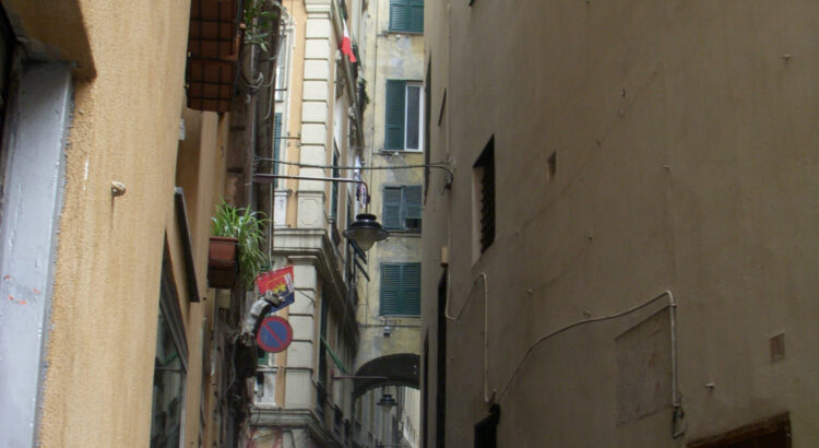 j’aime Gênes, cette ville grand port de la Méditerranée où l’on retrouve ce ciel tantôt bleu , tantôt envahi par d’énormes nuages , mais toujours magnifique ! j’aime ces ruelles étroites qui descendent vers la mer avec le linge au fenêtres , ces portes qui cachent des maisons magnifiques , ces façades de maisons en trompe l’oeil , ces volets à jalousie qui savent si bien protéger du soleil et des regards .