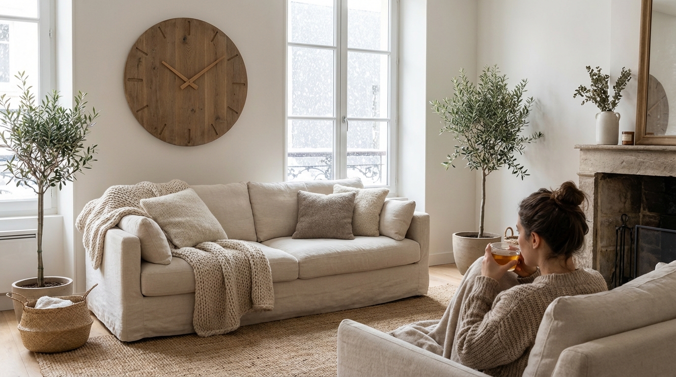 Dans beaucoup de salons français, on retrouve encore la même silhouette au mur : un énorme cadran en métal noir, inspiré des gares et des vieilles usines. Pratique pour lire l’heure, mais quand le vent souffle dehors et que l’hiver s’installe, cette pièce peut accentuer une impression de froid visuel, presque administratif.