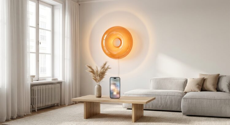 Pour 2026, IKEA et Sabine Marcelis gardent la forme donut mais transforment VARMBLIXT en objet high-tech discret. La nouvelle version devient compatible Matter, se connecte au hub DIRIGERA et se pilote depuis l’application IKEA Home. Elle permet :