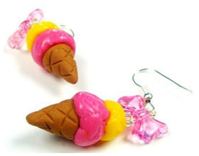 ... mes boucles d'oreilles "glace à la fraise"... ... pour me mettre au régime en gardant le sourire !