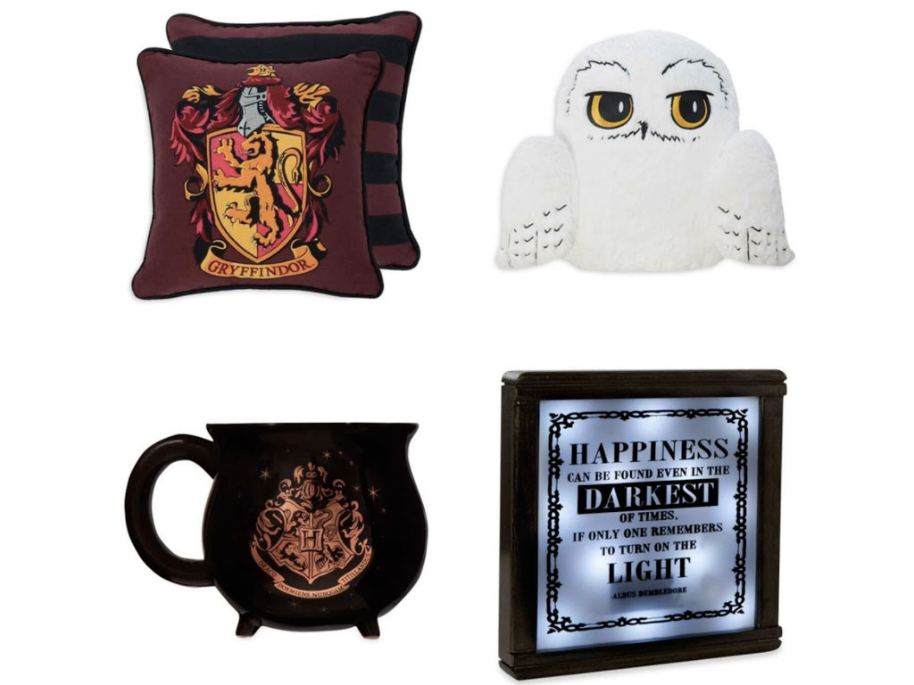 Au programme cette fois-ci ? Des plaids moelleux, des coussins aux couleurs des maisons, des mini-chaudrons en guise de tasse, une guirlande lumineuse inspirée par les bouteilles de potion, ou encore un panneau lumineux avec l’une des plus célèbres citations de la saga : « Happiness can be found even in the darkest of times. If only one remembers to turn on the light. »
