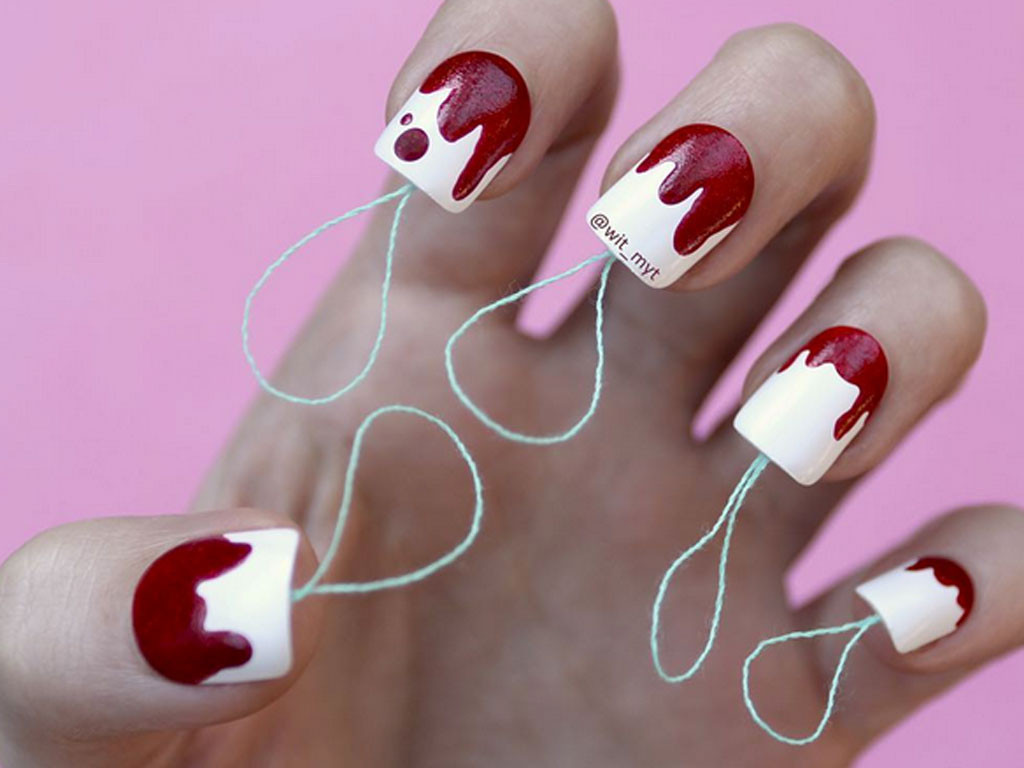 De partout, des initiatives se développent pour tenter de faire comprendre au grand public que ce sujet ne devrait absolument pas être un tabou. A l’instar d’Annelies Hofmeyr, une nail-artiste canadienne qui a créé une manucure inspirée par les tampons. Assez facile à réaliser, ce nail art demande juste un vernis rouge et un vernis blanc. Un des petits fils bleus, pour renforcer l’effet « tampon » !