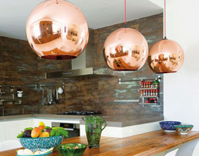 Utilisé en guise de luminaire, le cuivre met en valeur la pièce en un éclair ! Chez Erin Hiemstra, la blogueuse américaine de apartment34.com, les suspensions sont en laiton (un mélange de cuivre et de zinc) et arborent un aspect plus lumineux que le cuivre pur.