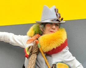 Cette reine du style aime se colorer les cheveux, porter des chapeaux extravagants, se rosir les joues comme une poupée russe, mélanger les plumes et les poils, mettre des mitaines, vernir ses ongles et compléter le tout par un accessoire décalé : une cane.