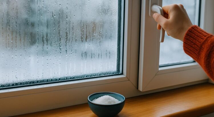 Pour compléter ces habitudes, une astuce de grand-mère séduit de plus en plus de foyers : le bol de sel posé près de la fenêtre. La méthode est simple, presque enfantine. Avant de vous coucher, il suffit de placer un petit bol ou une coupelle remplie de sel de table sous le rebord de la fenêtre ou juste à proximité. Au réveil, la condensation s’est nettement réduite, et le sel est devenu humide ou s’est aggloméré. Le sel joue ici le rôle d’un déshumidificateur maison, en absorbant naturellement une partie de la vapeur d’eau avant qu’elle n’atteigne la vitre. Le sel fin fonctionne très bien, mais n’importe quel type de sel convient. Pour garder l’efficacité, mieux vaut le remplacer tous les deux ou trois jours, voire une fois par semaine selon le taux d’humidité, et multiplier les coupelles dans les chambres, la salle de bain ou la cuisine pour faire baisser l’humidité globale.