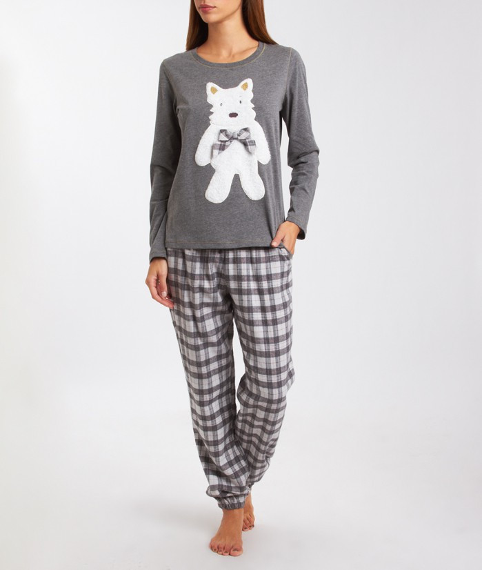 [ez_link target=’_blank’ url_id=’20600′ ]http://www.etam.com/lingerie-de-nuit/tous-les-ensembles/scott-pyjama-2-pieces-bas-carreaux-haut-patchwork-ours-gris.html[/ez_link]Pyjamapreppy à carreaux avec chiot et nœud, 45 €