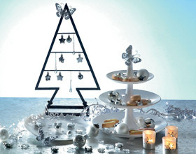 2…. Sapin chandelier « Estilo » pour bougies chauffe-plats, en acier inoxydable brossé mat, 81 cm de haut, 169 euros, Blomus sur www.feufollet.eu