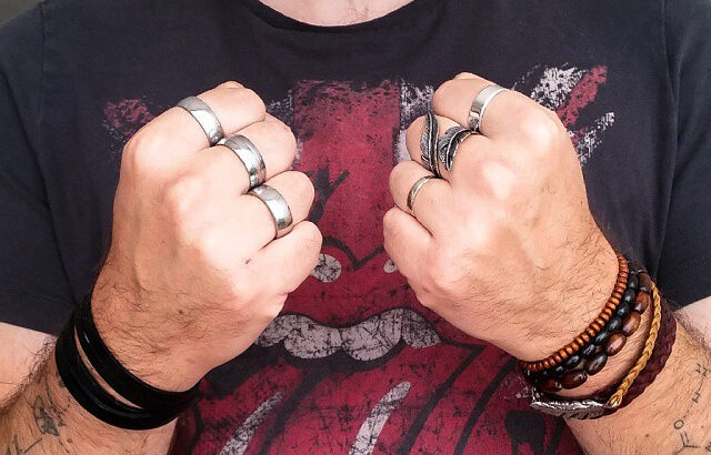 Quand je parle bijoux, je devrais plutôt dire accessoires, car ce ne sont pas des bijoux de « valeur », genre chevalier ou gourmette en or, chaîne plaquée ou bagouze en argent…. Non, mon homme aime les accessoires plutôt simples : bracelets en cuir, bagues en acier. Ça tombe plutôt bien, je n’aime pas le style trop précieux et lui non plus.