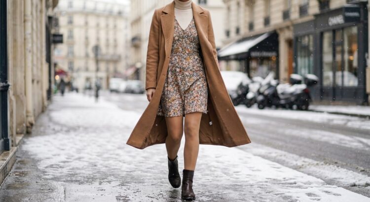 Ce jeu de superpositions, appelé layering par les stylistes, garde la silhouette fluide sans empiler des couches lourdes. Le col roulé fin disparaît sous la robe, le collant polaire imite la jambe nue, tandis qu’un manteau long et des bottes complètent la barrière thermique. Ajoutez bonnet, gants et écharpe : vous restez libre de vos mouvements, sans frissonner dès que vous quittez votre bureau ou le métro.