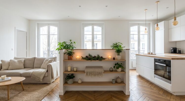 Pour réussir son projet, les architectes d’intérieur recommandent de commencer par l’emplacement : tracer au sol l’alignement qui laisse passer la lumière des fenêtres, vérifier la circulation, repérer ce que l’on veut cacher (évier, plaques, écran, jouets). Vient ensuite le montage, en kit ou sur mesure, puis la mise en scène : peinture dans une teinte profonde pour réchauffer le volume, objets déco, plantes, lampe posée sur le muret. En hiver, beaucoup transforment même la demi-cloison en décor de fête avec guirlandes et branches de sapin, tout en profitant au quotidien d’un salon plus calme, d’un coin lecture préservé et d’une pièce de vie enfin structurée.
