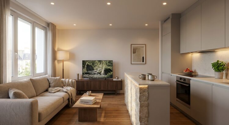 Pour que la transformation fonctionne dans un petit logement, certains détails comptent. Les décorateurs recommandent d’éviter un muret trop haut ou totalement plein, qui couperait la luminosité. Une demi-cloison ou un comptoir à hauteur de table de bar suffit souvent à cacher le plan de travail tout en conservant la vue. Des rangements fermés en sous-face aident à désencombrer le reste de la cuisine, tandis qu’un éclairage dédié (suspensions douces, ruban LED sous le plateau) permet de moduler l’ambiance entre repas et soirée télé.