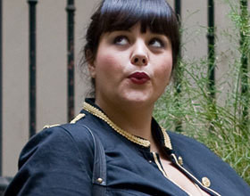 « Trouver des vêtements grandes tailles pourvus de ces petits détails mode qui font la différence est quelquefois difficile. Alors je customise. Cette veste noire était trop basique : il m’a suffit de coudre des galons aux manches, au col et d’ajouter des boutons en métal pour lui donner le look veste d’officier qu’on voit partout cette année. »« Un jean bien coupé est une pièce infernale à trouver. C’est aux Etats-Unis que je me fournis principalement. Celui-ci vient de la marque Torrid, mais il m’arrive de dénicher de bonnes pièces chez NewLook. Cette année, la marque Taillisime a aussi sorti un jean en toile enduite dément. »