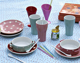 Cassolette en porcelaine à pois, FlyDe 4,50 euros à 9,50 eurosCoupe à glace Tutti bleus et roses, Fly2,90 euroswww.fly.frBougie herbe mouillée, Bougies la Française21 euros.www.bougies-la-francaise.com