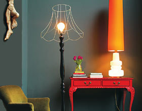 – une vieille lampe de table– de la peinture à base de solvant, un pistolet à peinture et un compresseur (à louer dans un magasin spécialisé) OU une bombe aérosol de peinture pour carrosserie- du papier abrasif- de la lessive de soude- du white-spirit- un cutter- une éponge